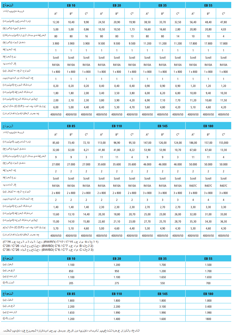 مراوح محورية هادئة وعالية الأداء مع منظم تردد. التحكم في ضغط التكثيف من خلال تغيير مستمر في التدفق.